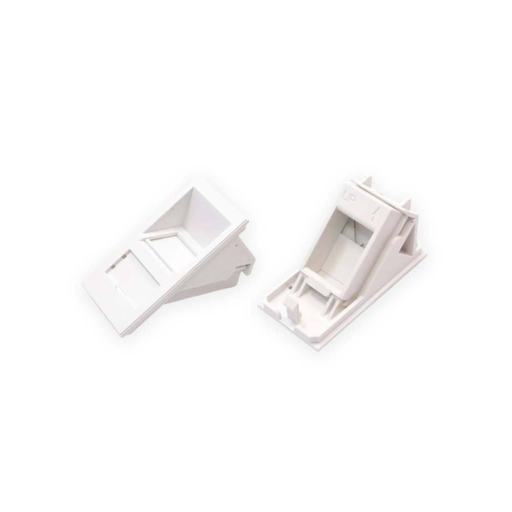 Schnell Keystone Angled Bracket is a compact, durable solution for mounting keystone jacks in surface-mount or confined spaces. Its angled design reduces cable strain and improves bend radius, ensuring a clean and professional finish in network installations. Ideal for structured cabling systems, it supports quick snap-in fitting of standard keystone jacks for efficient deployment.